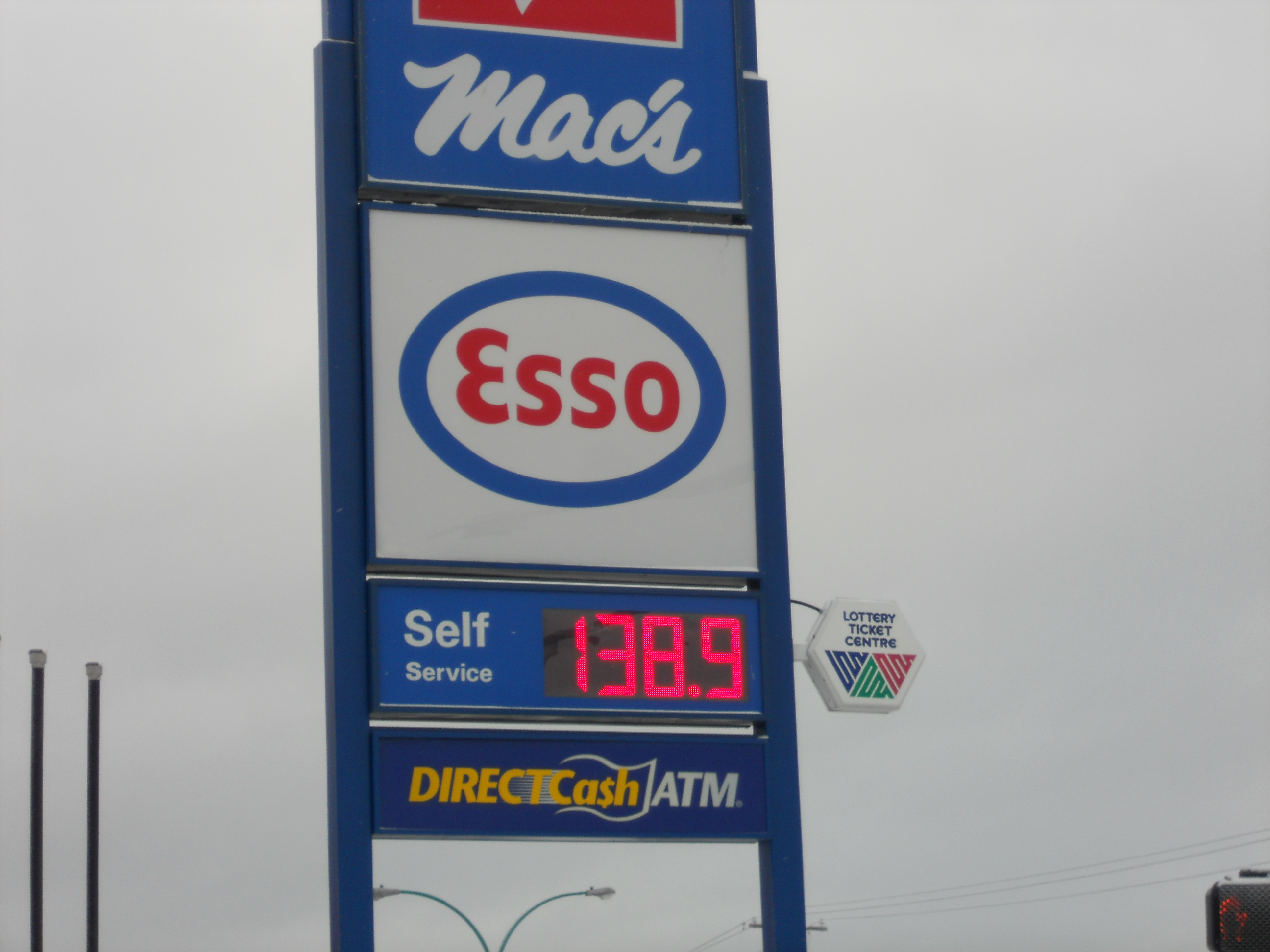 midnight, to allow people to fill up beforehand and save a whopping couple of bucks. I used to be amused at the interviews on the Toronto 6 o’clock news, of motorists who were usually throwing their hands up in frustration and complaining that the government should be doing something to reduce the gas price, as they filled up their gas-guzzling SUVs. In the year+ that I’ve been in Yellowknife, the price of gas has not budged from $1.389/litre, which makes Toronto prices seem like a joke. Here, where there’s a high proportion of gas-guzzling Jeeps, SUVs and big pick-up trucks, nobody bats an eyelid. On top of that, during the depths of winter, people frequently leave their vehicles idling while they go grocery-shopping, not exactly a 2-minute task.