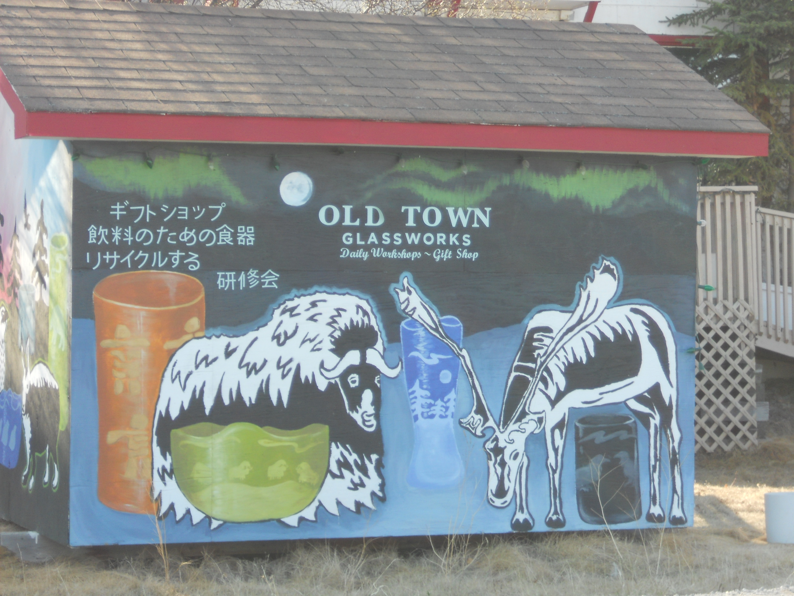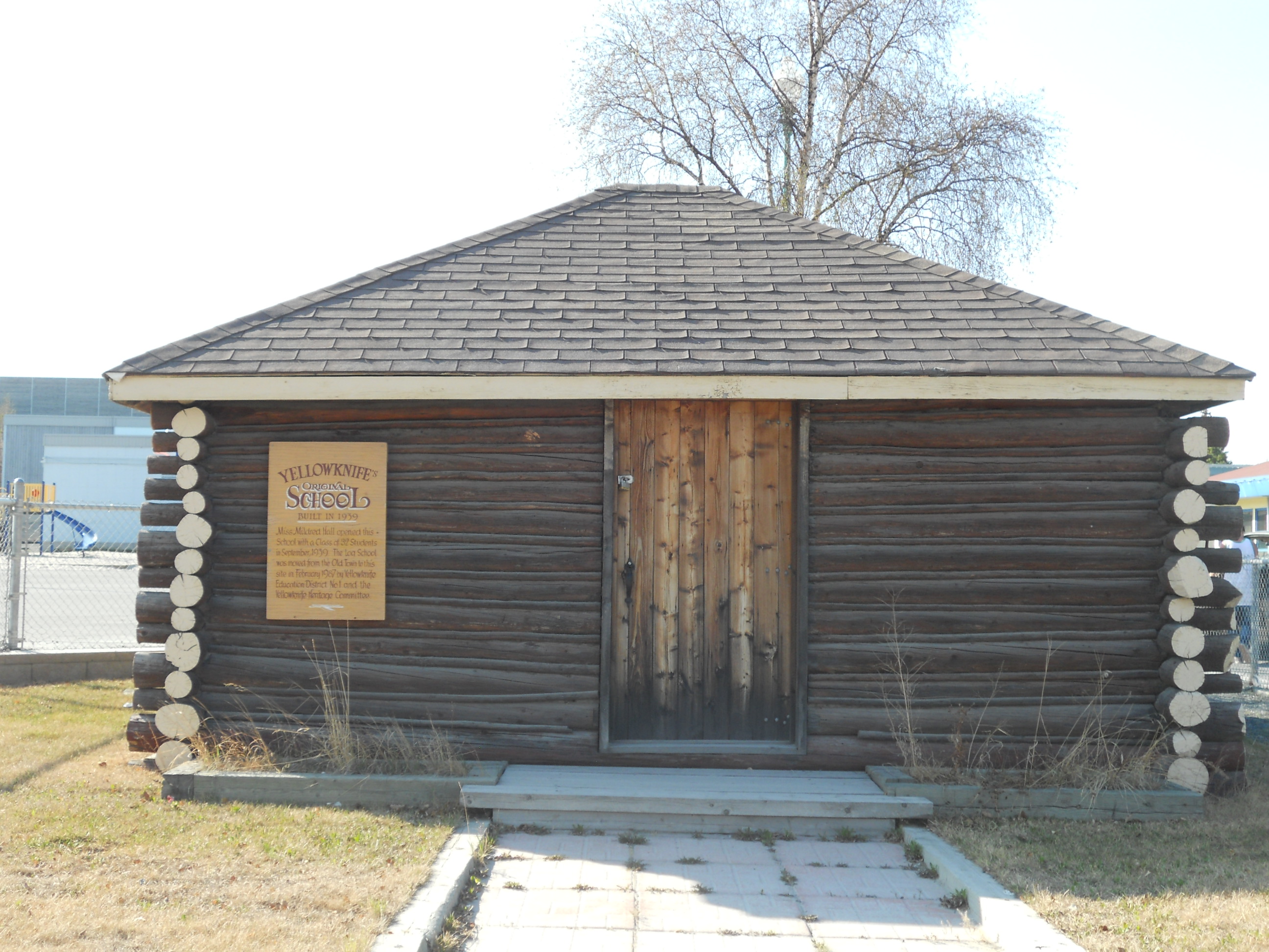 A few metres from that totem pole is another heritage building, the Fireweed Studio. It’s a 1930s log cabin that used to be on the site of Giant Mine, which is an old gold mine located just outside of town. This cabin has been renovated and put to various uses over the years, including as a studio for sales of artwork. Another very similar heritage cabin is around the corner, Yellowknife’s first public school. This school was opened in 1939 in Old Town, with 32 students. It was opened by Mildred Hall and after the building was restored, it was moved to its current uptown location, on the grounds of the much larger school that is named after that first teacher.