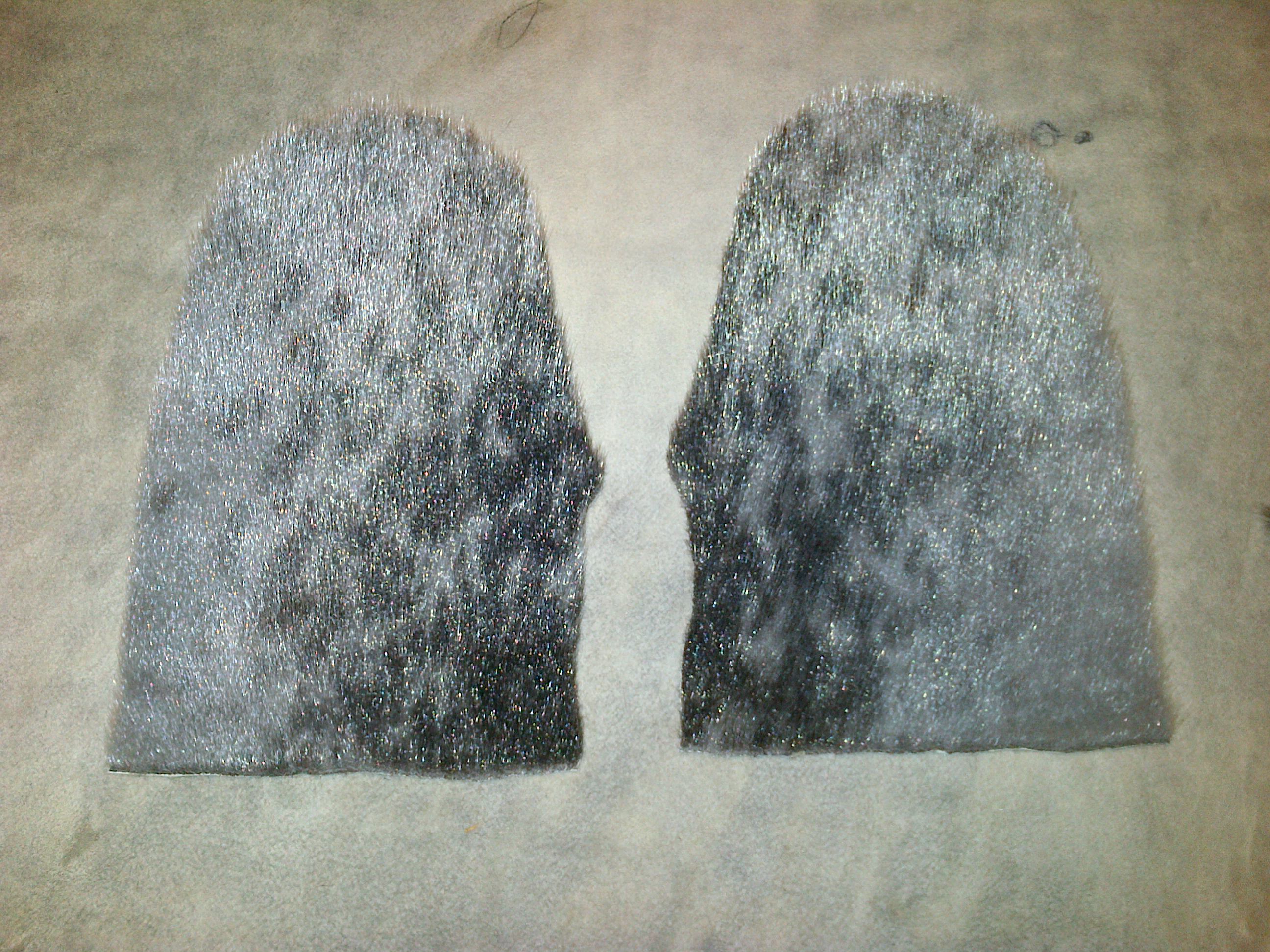 We had to first fit the patterns on the fur side of the pelt, to ensure that we avoided any missing fur or other imperfections. As with humans, sealskins carry evidence of injury or trauma suffered by the animal during its lifetime. The pattern had to be traced on the back side of the pelt, and we cut it with a very sharp craft knife. We had to cut according to the direction of the fur, based on the intended use of the mittens. If the mittens were to be used for walking around town, the fur should point toward the ground, so that any snow would fall off. But if they were to be used for an outdoor activity such as snowmobiling, the fur should point towards the body, i.e. as the wind would blow it.