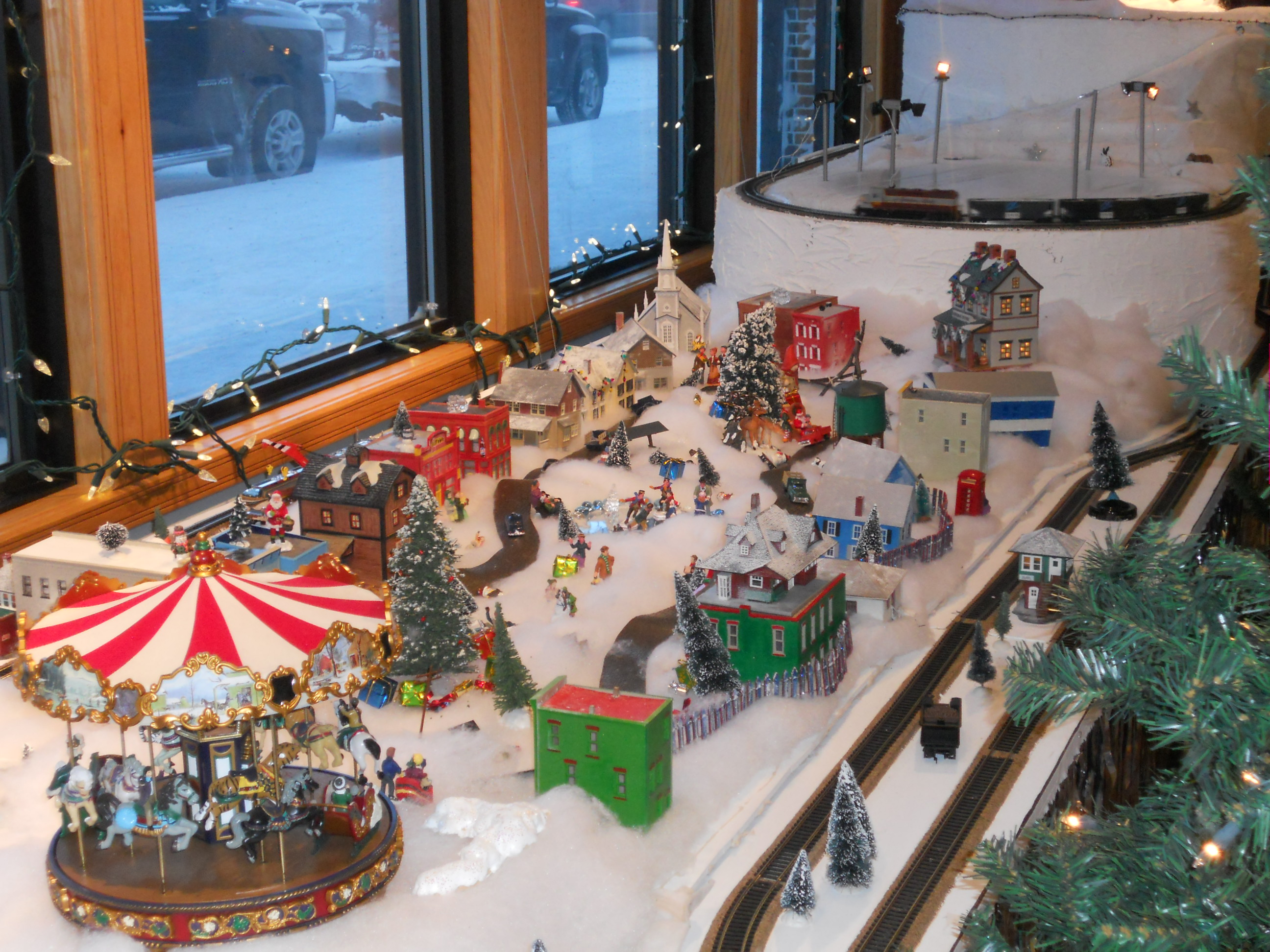 The main street is also decorated for the season, and various businesses around town do their part to make things festive. One of the diamond mines puts up a mini Christmas village, complete with a running train set. It’s hard to pass by their window and not stop to take a peek. It’s a huge display, so big that I could only capture it in sections. This is my favourite section.