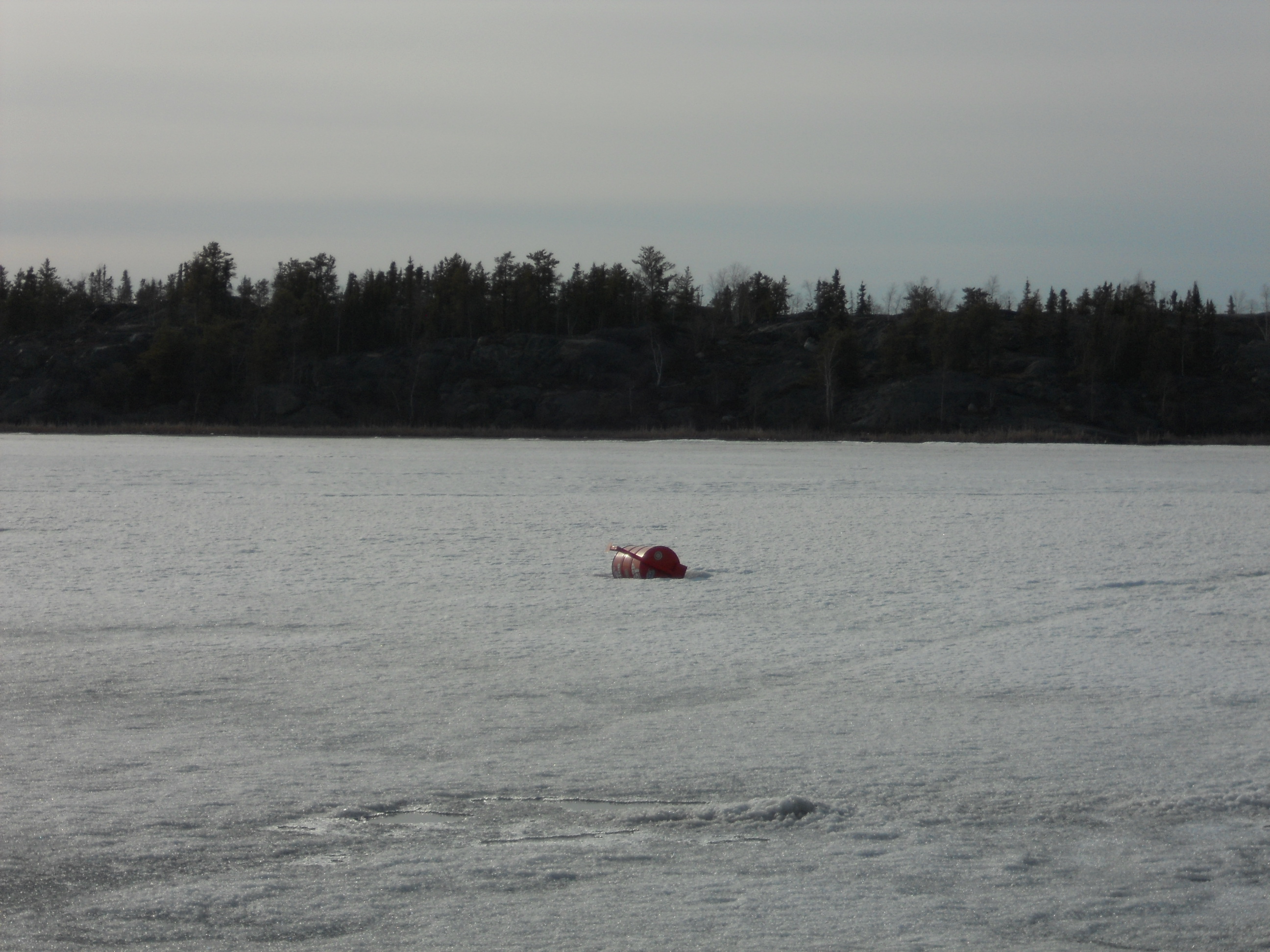 At the start of the month Frame Lake was still under ice, on top of which the Ice Device sat squarely. The Ice Device is a red barrel that is placed on the ice of the lake during the Spring. This year it was done on May 1st. People then buy tickets to enter a contest where they can win money by accurately guessing (or the closest guess) when it will fall through. I took this picture in early May, and I don’t know exactly when it happened, but it did, because the ice was fully thawed before the end of the month. The things we do for fun in this town…