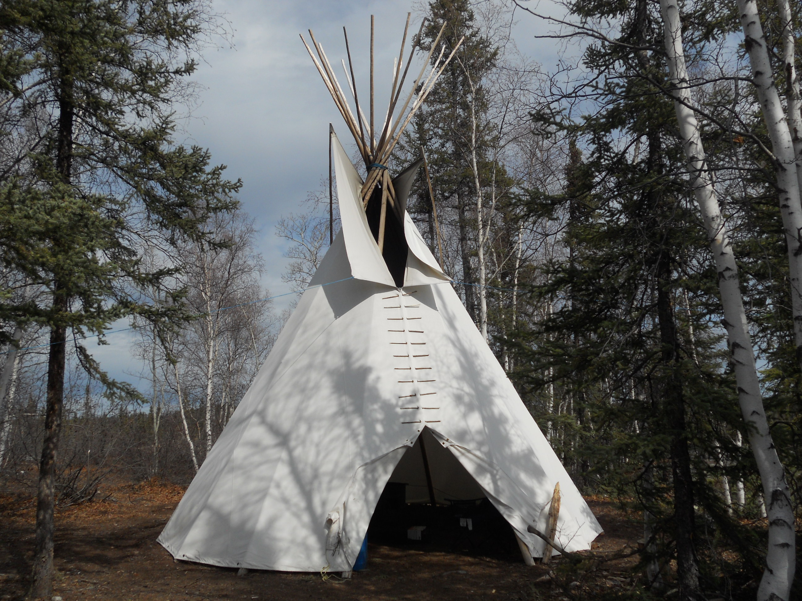 It was quite peaceful, as it always is out in the bush. Barring the whine of the mosquitoes, which disappeared once I got out into the sunshine, I didn’t hear a sound, not even a bird singing. The last site was on a hill close to the road to Dettah, where Blake also runs a culture camp for school kids. Onsite were a teepee, tents, some furniture etc. It was a nice-looking teepee, fragrant with spruce and spacious on the inside, the kind of lodging that I might actually consider spending a night or two in, during the summer, of course.