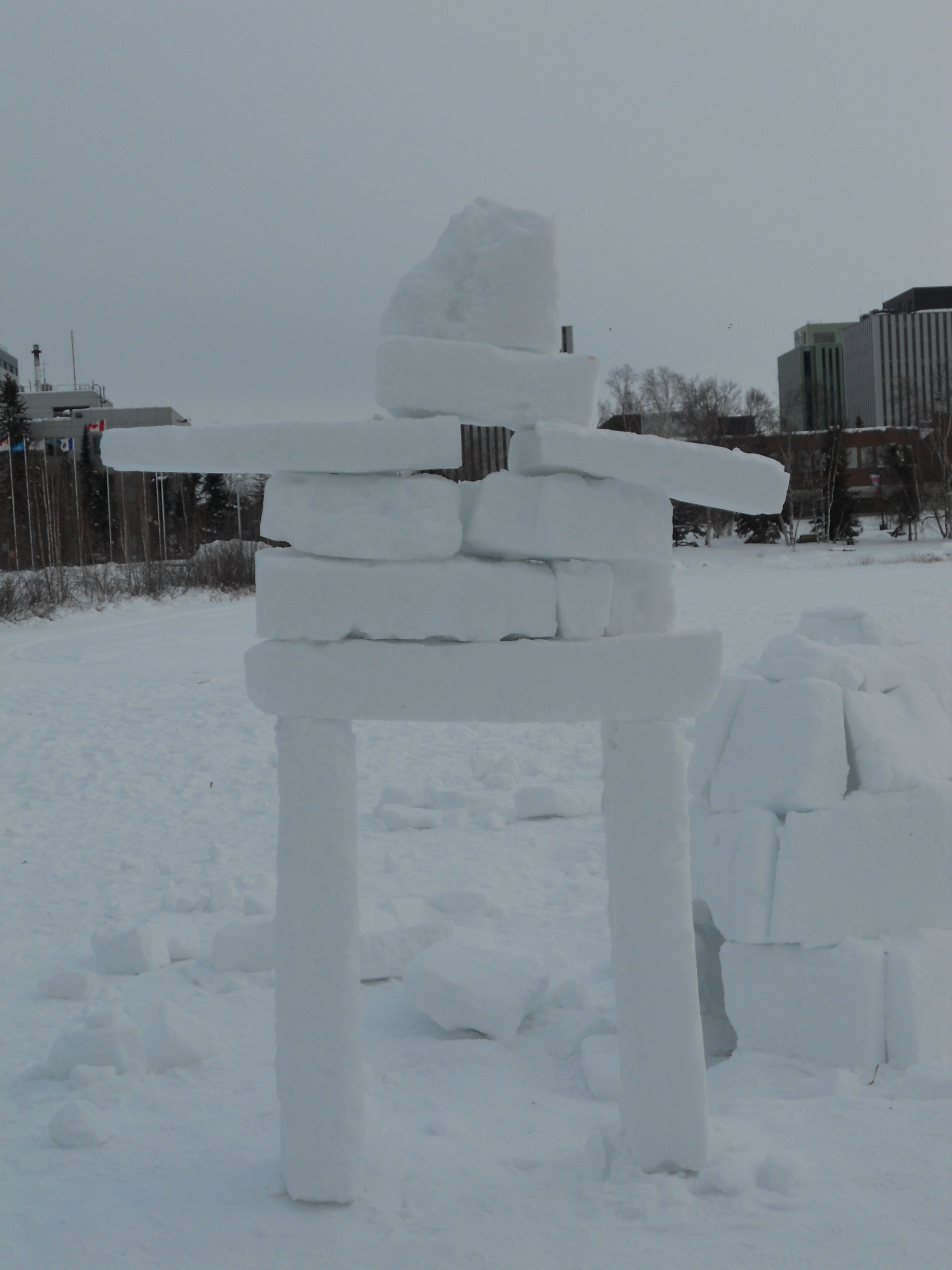 There’s one rather well-made snow inukshuk that stands out – literally – among the igloos and other structures.